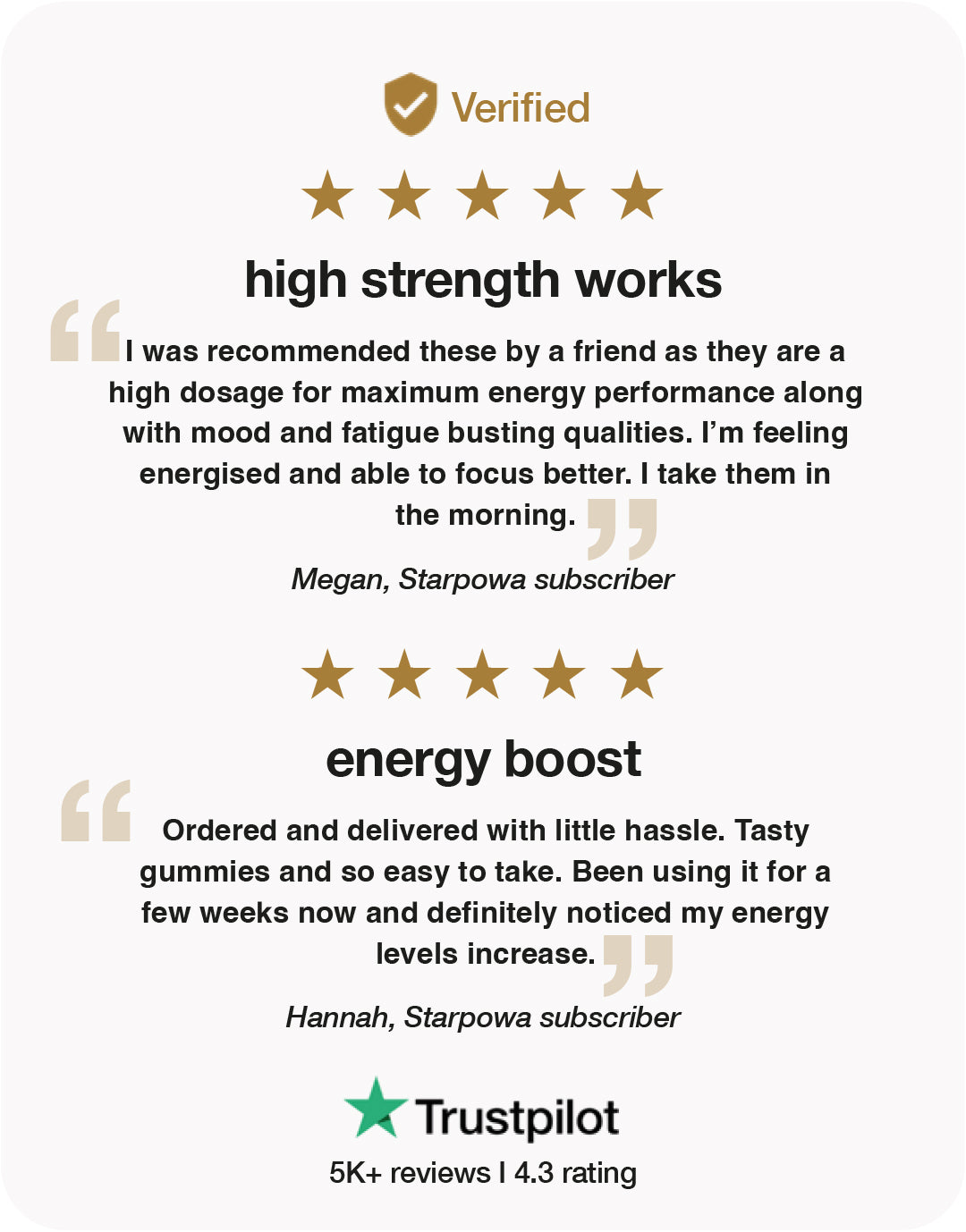 Each of Starpowa's gummies are vegan-friendly, contain less than 0.1g of sugar per gummy, and are naturally sweetened using plant extracts. All of our products are formulated and manufactured in the UK to the highest standards.