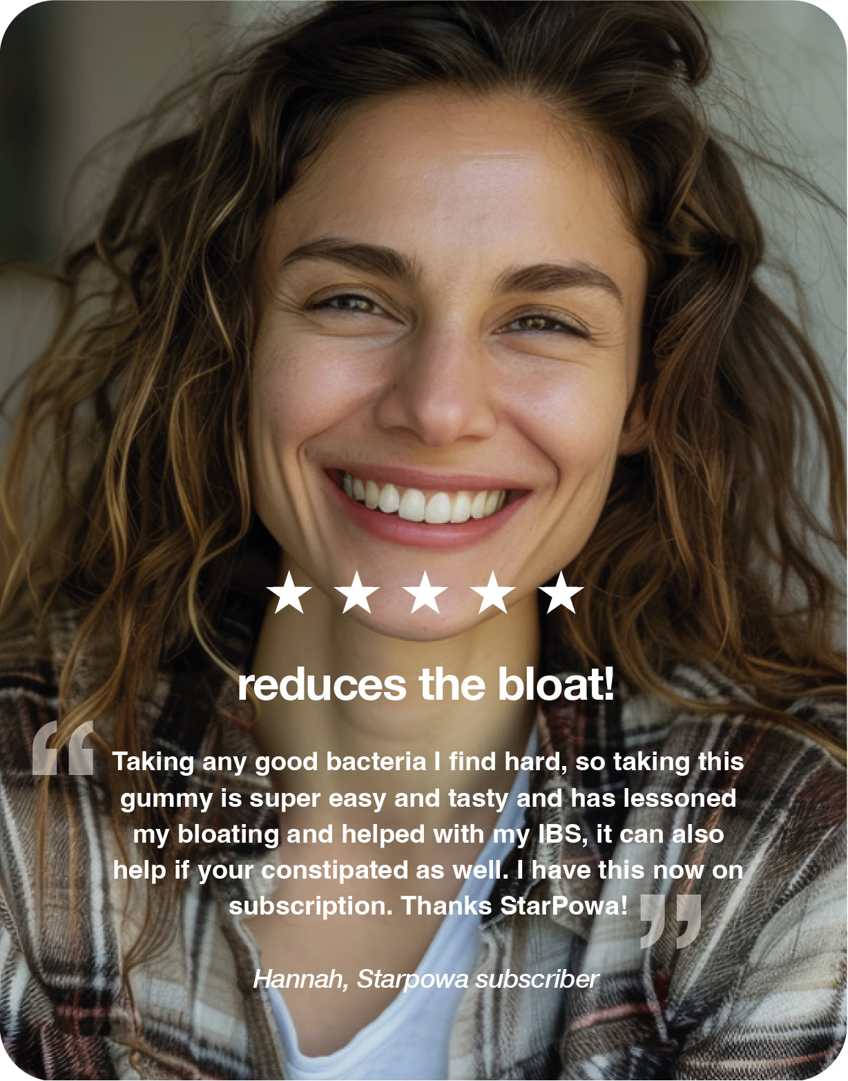 These little gummies are absolutely fantastic! Im not one to write reviews but I can't believe how much they have helped my IBS symptoms. Prior to taking these, after most dinners I would be so uncomfortable and majorly bloated. I could not figure out what foods were making the symptoms flare up which was very frustrating! After taking one of these gummies religiously for two weeks however the symptoms stopped!!!! I'm no longer in such discomfort and I'm alot happier because of this! Thank you Starpowa