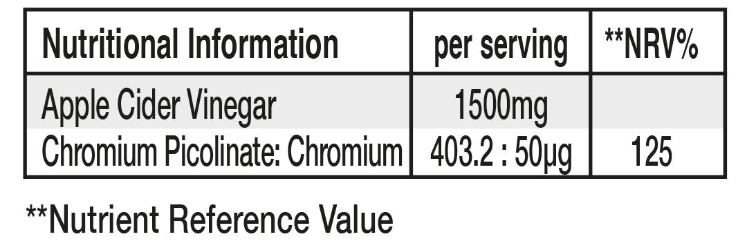 Each serving provides 1500mg of Apple Cider Vinegar with the ‘mother’, offering a natural source of acetic acid, alongside Chromium Picolinate, which contributes to normal macronutrient metabolism and the maintenance of normal blood glucose levels. This thoughtful combination offers a gentle, enjoyable approach to supporting your nutritional balance.