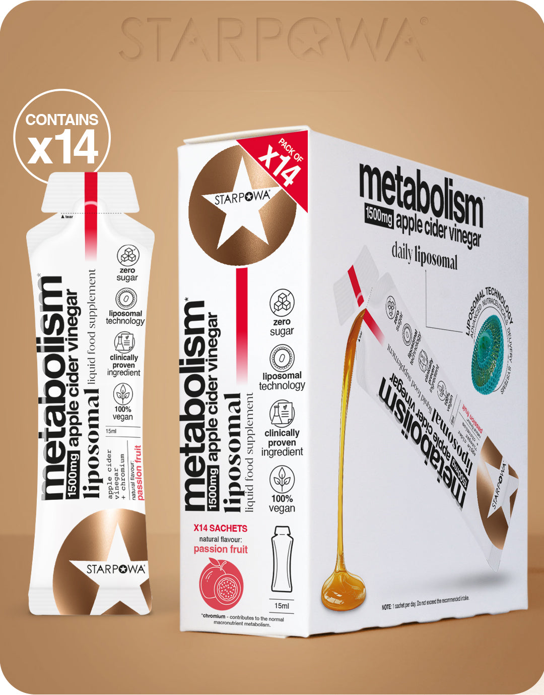 Our Liposomal Apple Cider Vinegar with Chromium is a delicious passion-fruit flavoured sachet designed to support everyday wellness and balanced nutrition. Perfect for those who enjoy the benefits of Apple Cider Vinegar but prefer a smooth, convenient format without the sharp taste, this formula fits easily into any daily routine.