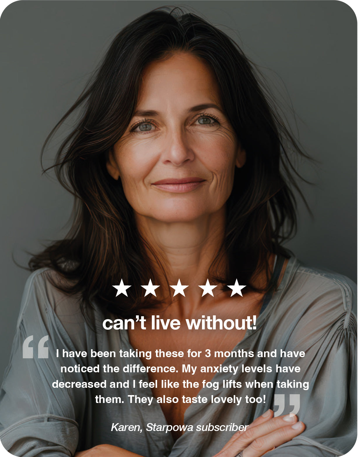 I had been suffering from severe anxiety and my hair was thin and falling out. I had read about CBD and how it works and liked the Starpowa gummies packaging. From day one I noticed that I had tons of energy and my hair was thicker and healthy. Now my hair is long, thick and shiny. My anxiety medication is sitting in the drawer. I feel like a completely different woman.